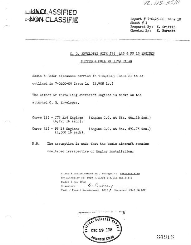C.G. envelopes with J75 A25 & PS 13 engines fitted & Full MX 1179 Radar