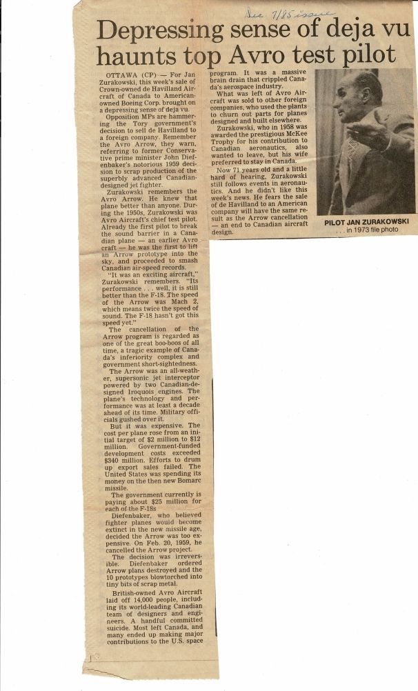 Zura ponders sale of deHavilland to Boeing - discusses the Arrow