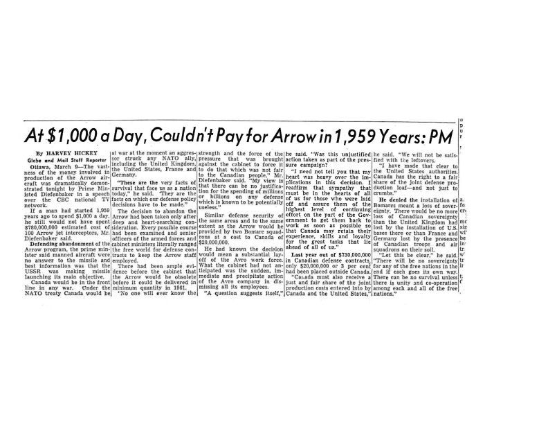Dief speaks on TV mentioning magnitude of the cost, and mentions future defense considerationsPublication Details