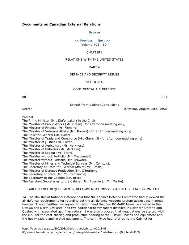 Cabinet Conclusions 8-28-58