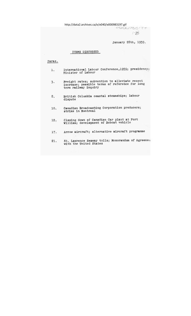 Date / Time Period: 1/28/59 Pages: 3 Publisher: Government of Canada