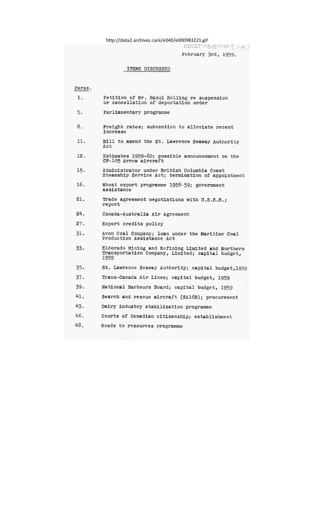 Date / Time Period: 2/3/59 Pages: 4 Publisher: Government of Canada