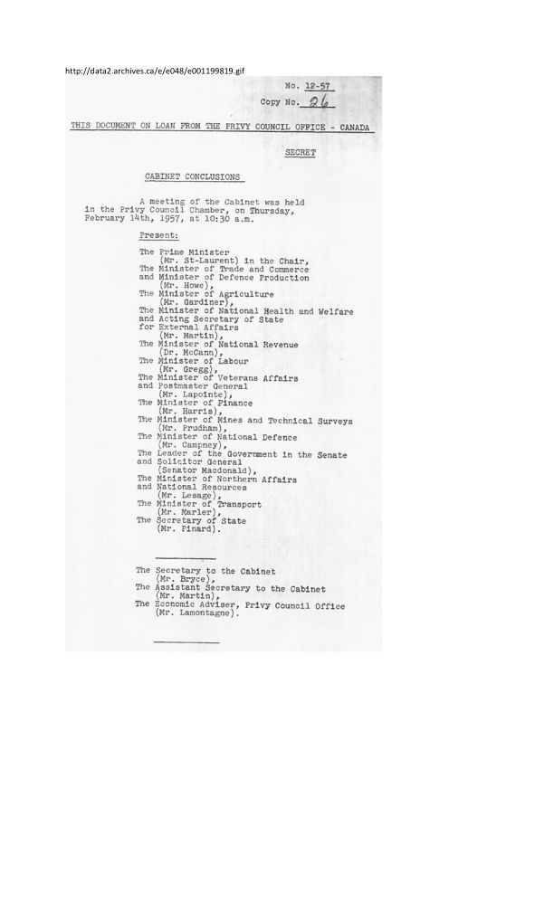 Date / Time Period: 2/12/57 Pages: 3 Publisher: Government of Canada