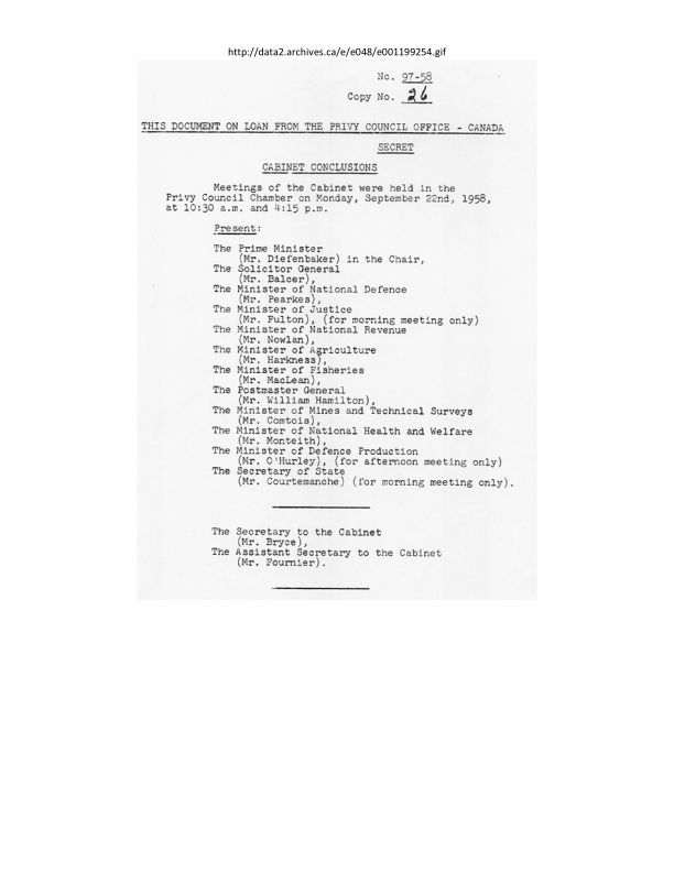 Date / Time Period: 9/22/58 Pages: 3 Publisher: Government of Canada