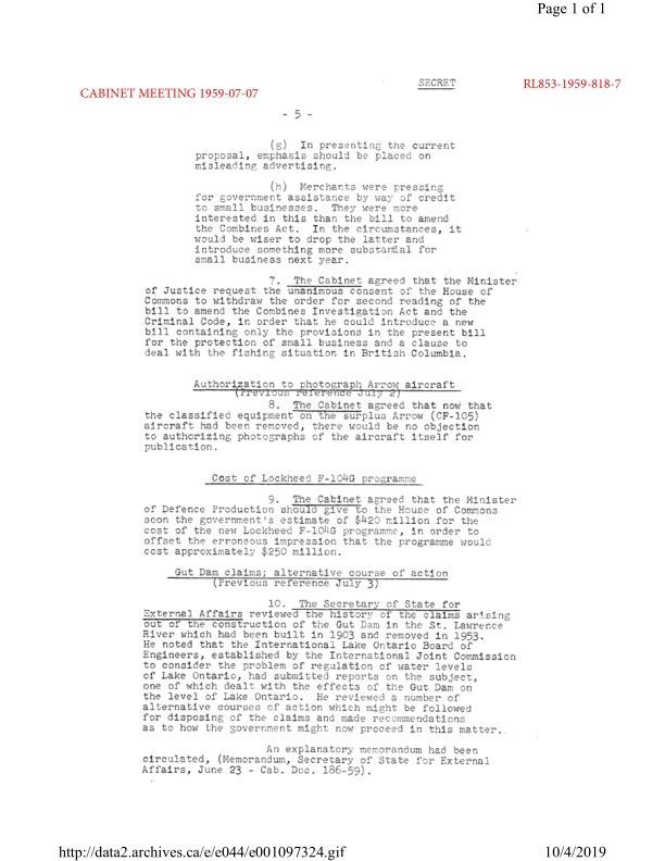 Date / Time Period: 1959-Jul Pages: 1 Publisher: Govt of Canada