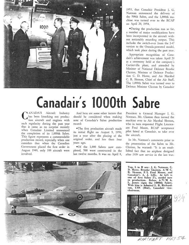 a congratulatory article on Canadair producing it's 1000th Sabre.