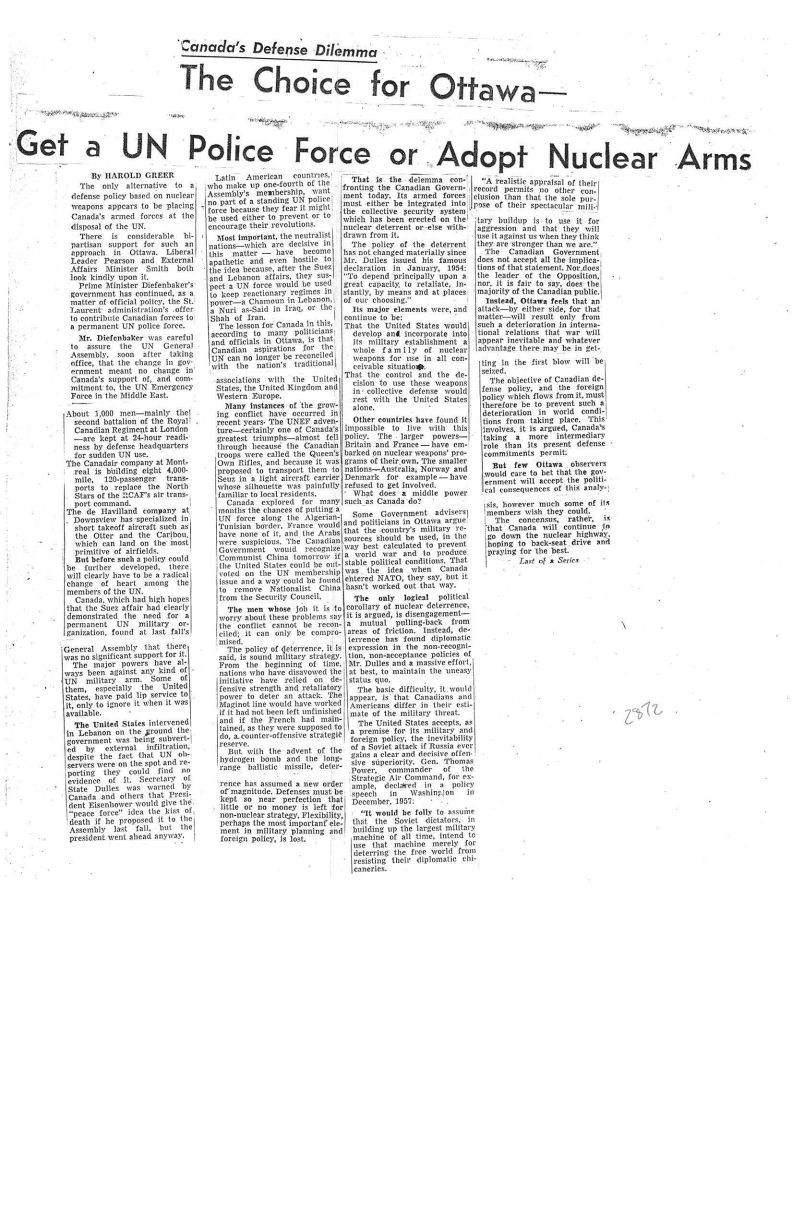 Canada's Defense Dilemma The Choice for Ottawa - Get a UN Police Force or Adopt Nuclear Arms