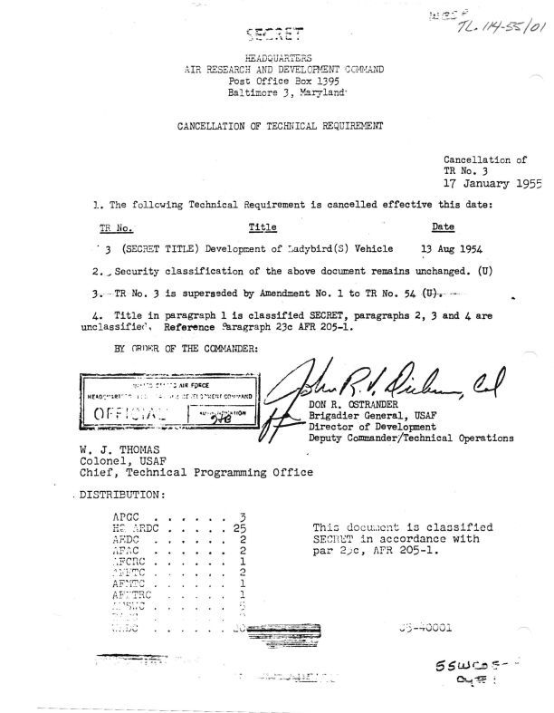 Cancellation of Technical Requirement No. TR3 for AVRO Ladybird vehicle (Development Plan 1794)