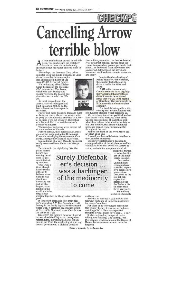 Reporter of the Sun writes an opinion piece critical of Dief, and woeing the decline of Canadian societyPublication Details