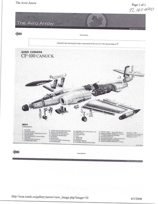 drawings of the CF-100, includes exploded view of Mk 4 and assorted drawings ranging from landing gear to misc parts