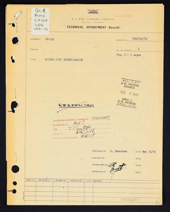 CF-105 Access door investigation - Report No. LOG/105/10