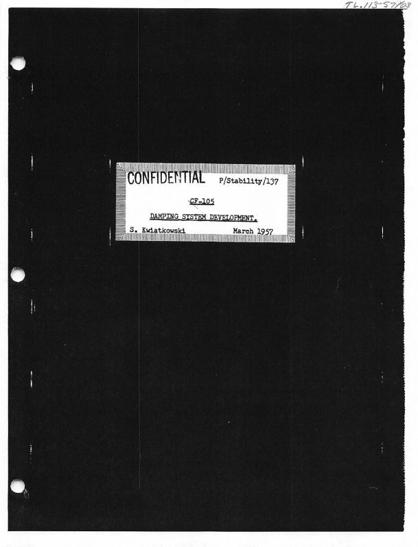 Brief Account of the Development of the CF-105 Damping System as of Mar 1, 1957 - Yaw Stability Augmentation, Control Stick Steering Feel, Pitch and Roll Control. Report approved by J. Chamberlin
