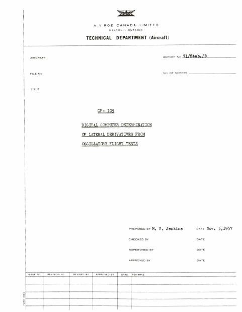 Date / Time Period: 11/5/57 Pages: 20 Author: M.V. Jenkins Publisher: Avro