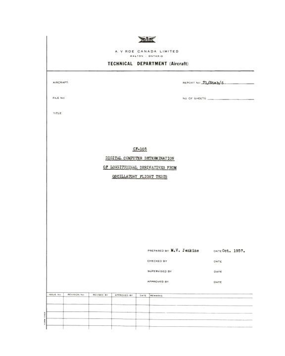 CF-105 Digital Computer Determination of Longitudinal Derivatives from Oscillatory Flight Tests
