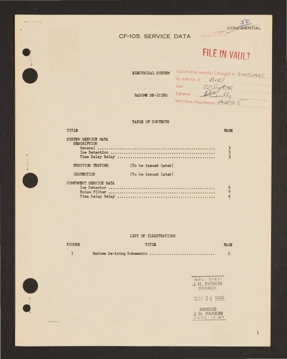 CF-105 service data. Section 50: Electrical system: radome de-icing