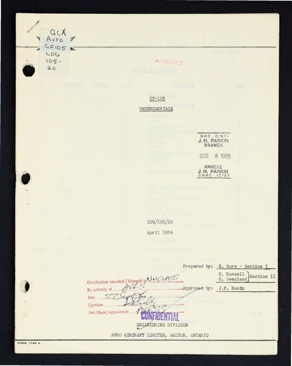 CF-105 undercarriage - Report No. LOG/105/20