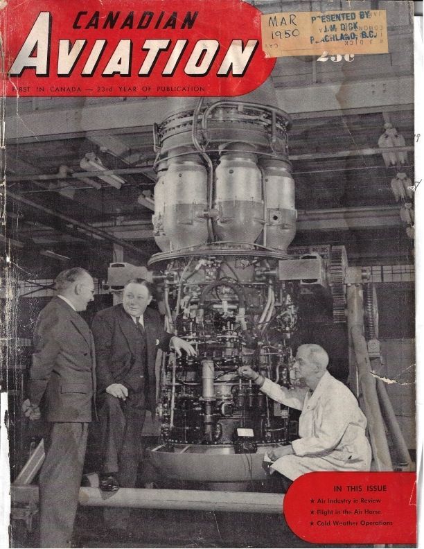 From Canadian aviation 1950 Mar - Cover photo of Sir Roy and others in front of Gas Turbine Orenda enginePublication Details