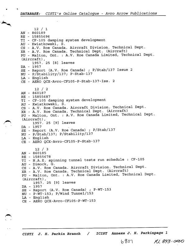 Printout of Avro Arrow publications