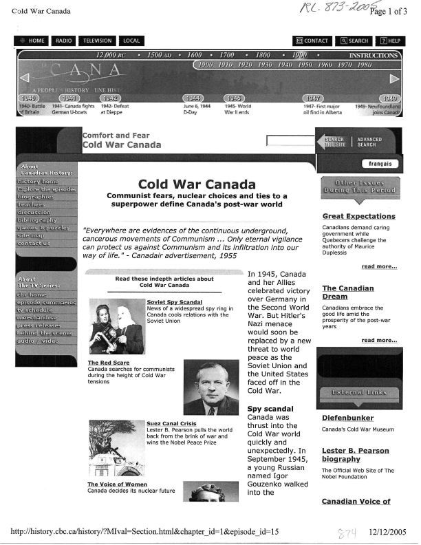 Date / Time Period: 12/12/05 Pages: 3 Publisher: CBC