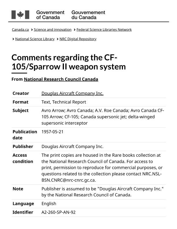 Comments regarding the CF-105/Sparrow II weapon system