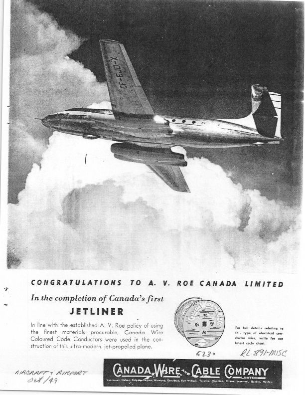 Congratulations to A.V. Roe Canada Limited in the completion of Canada's first JETLINEREntry/Object ID