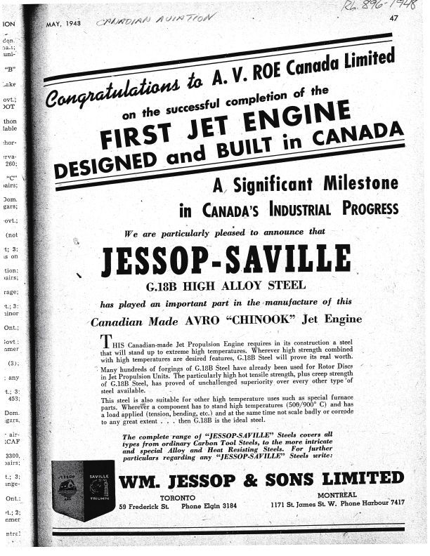 Congratulations to A.V. Roe Canada Limited on the successful completion of the First Jet Engine Designed and Built in CanadaEntry/Object ID