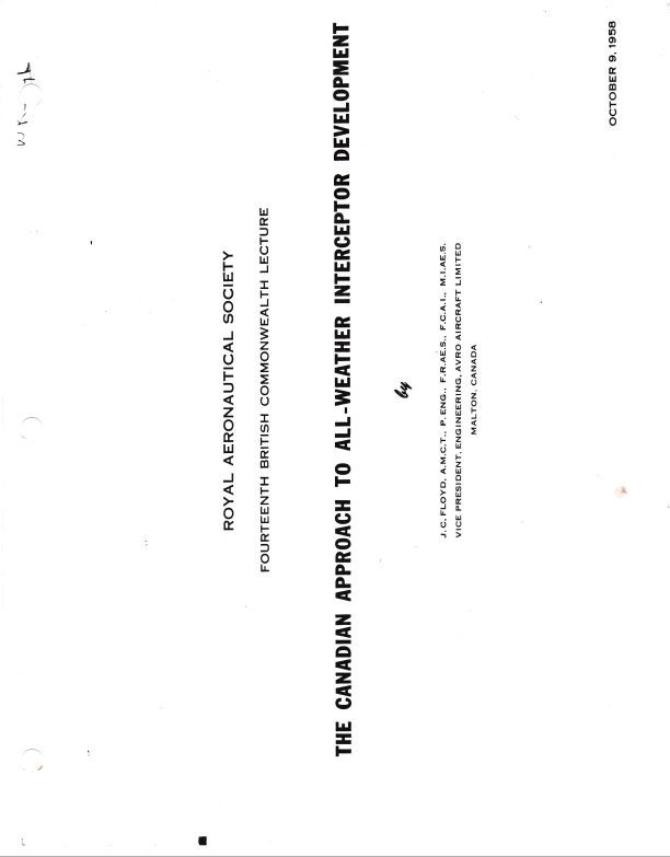 Copy of Lecture by J.C. Floyd to Royal Aeronautical Society on Canadian Approach to All-Weather Interceptor Development