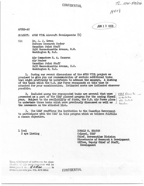 correspondence USAF Aeronautics Division to Canadian Joint Staff (CJS)