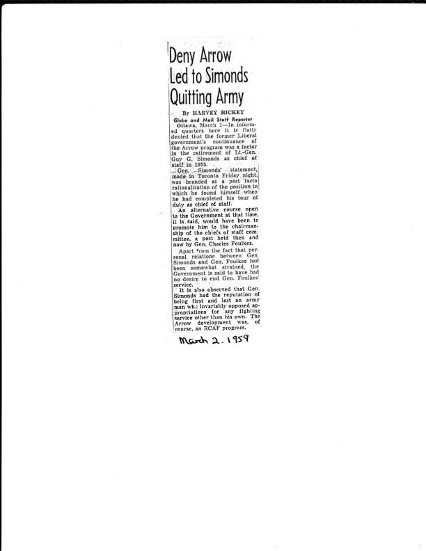 Informed people state the General Simonds did not retire over Arrow continuance in 1955.