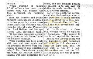Portion of a document from an unknown source states the US is paying for and therefore controlling the Dew Line which prevents Canadians from visiting without clearance