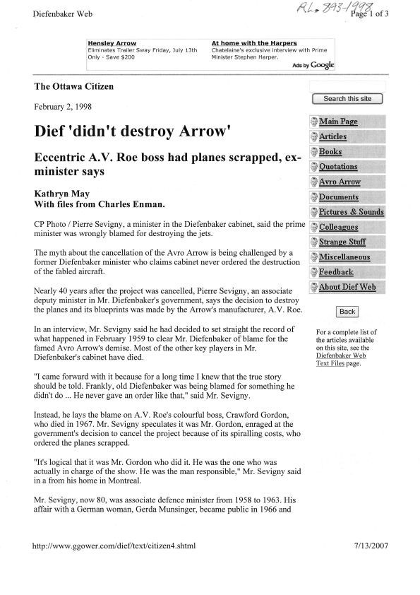 Cabinet minister claims incorrectly that planes are destroyed by AvroPublication Details