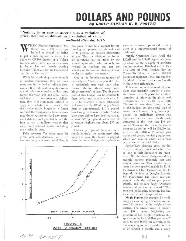 pg 23, 24, 27, 55 - discusses putting the value on the Sabre, CF-100 and others with the story including examples of the RCAF paying $10/pound for North Stars based on gross take-off weight, Sabres at $25/pound and CF-100's at $35/pound.Publication Details