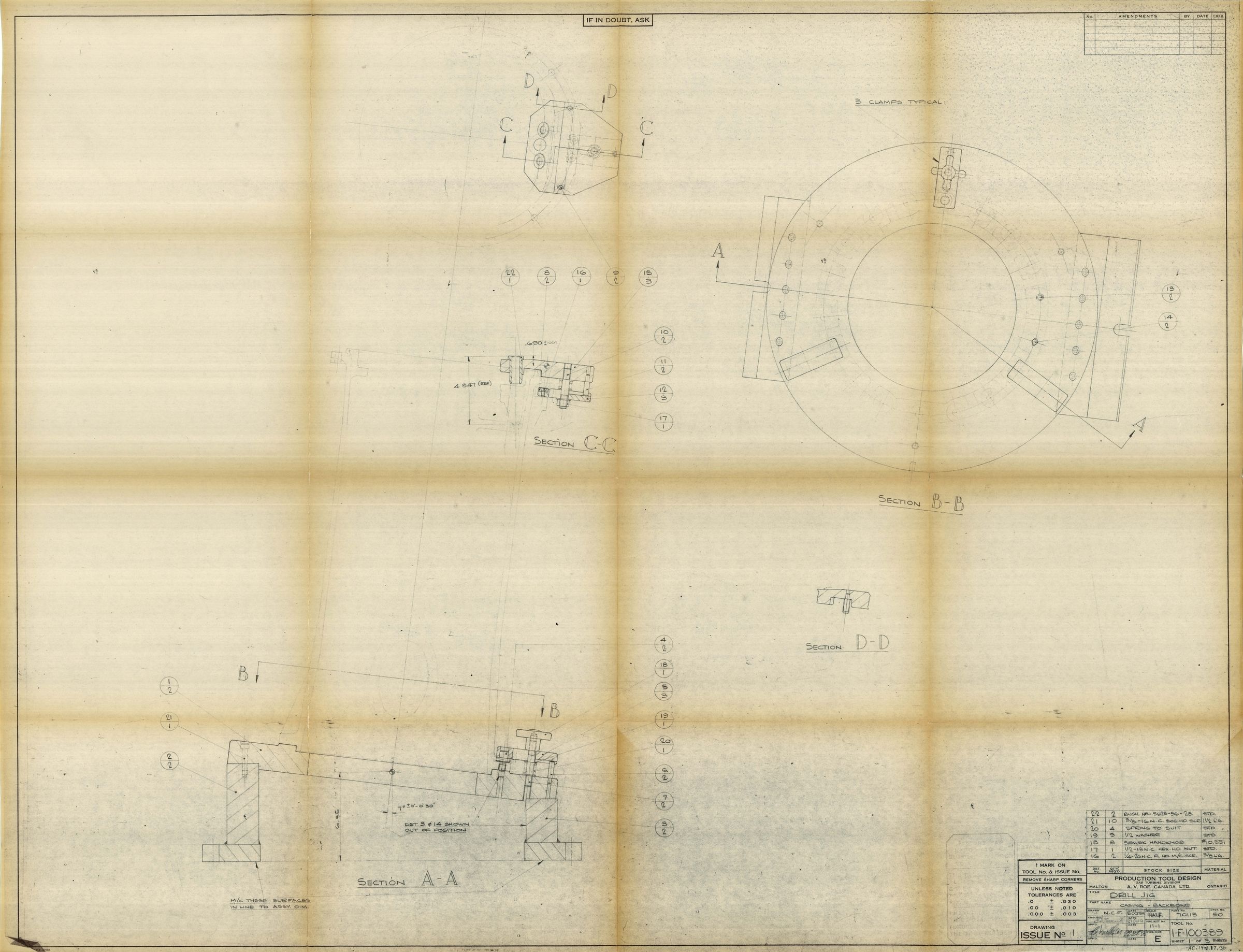 Drill Jig for Casing-Backbone - Tool 1-F-100389 Sheet 1 of 3