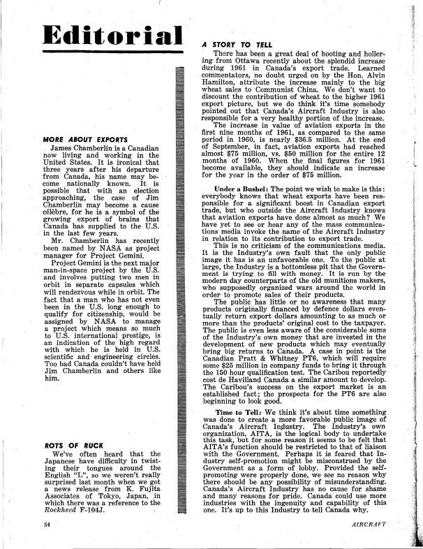 pg 54 More about exports - Jim Chamberlin named Project Manager for NASA Gemini Program