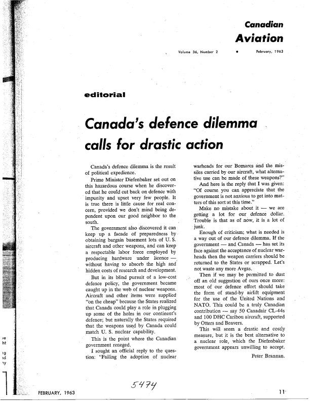 pg 11 Canada's defence dilemma calls for drastic action - The politics of defence is to do little, and offend even fewer.Publication Details