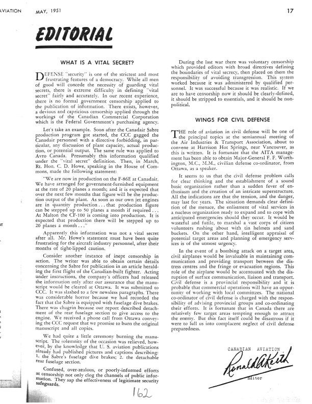 pg 17 C.D Howe announced that the CF-100 was starting into production in Malton with expected production of 20 planes per month.Publication Details