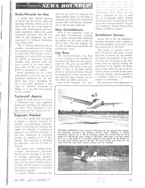 pg 107 An announcement by A.V. Roe that it will sponsor a national conference on scientific and engineering manpower aimed at analysisng and assessing the supply and demand of professsional engineers and technical personnel.General Notes