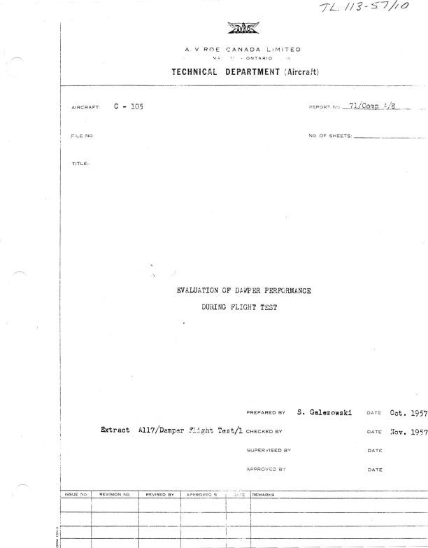 Report No. 71/Comp A/8; Extract All7/Damper Flight Test/1; to prepare a method for evaluating the performance of the damper system. Report checked by R. Carley