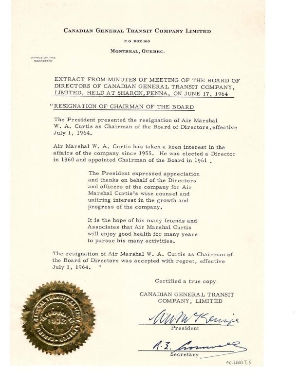Extract from Minutes of meeting of BOD of Canadian General Transit Company, 64/06/17