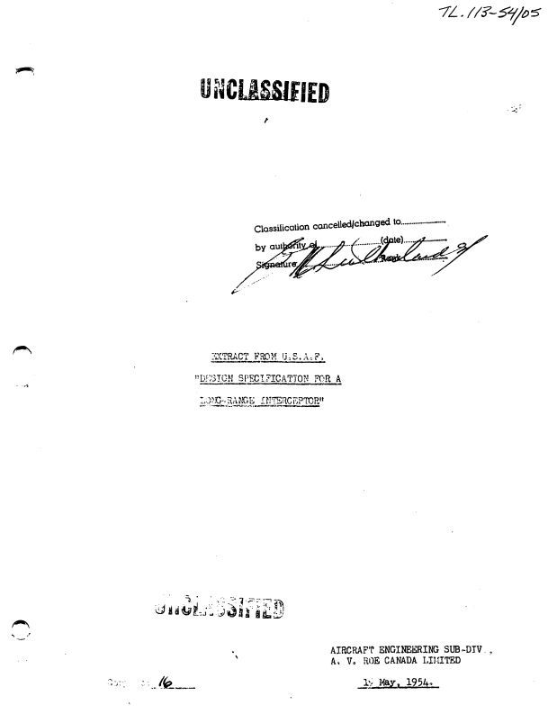 Summary of requirements for a long-range interceptor (CF-105) 19 May 1954