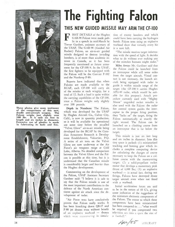 pg 14-15 April suggests missile for the CF-100