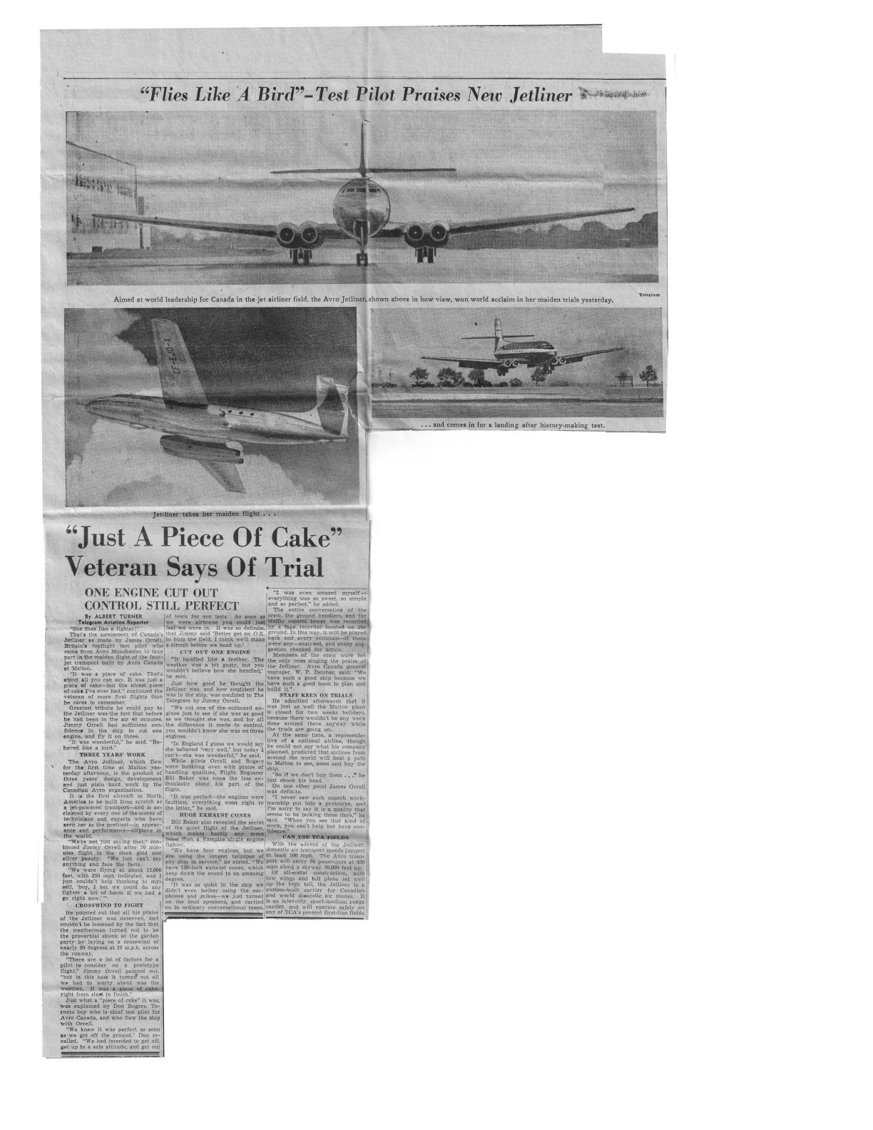 Discussion of Maiden Flight, including that they cut one engine and it still flew fine. With multiple images of JetlinerPublication Details