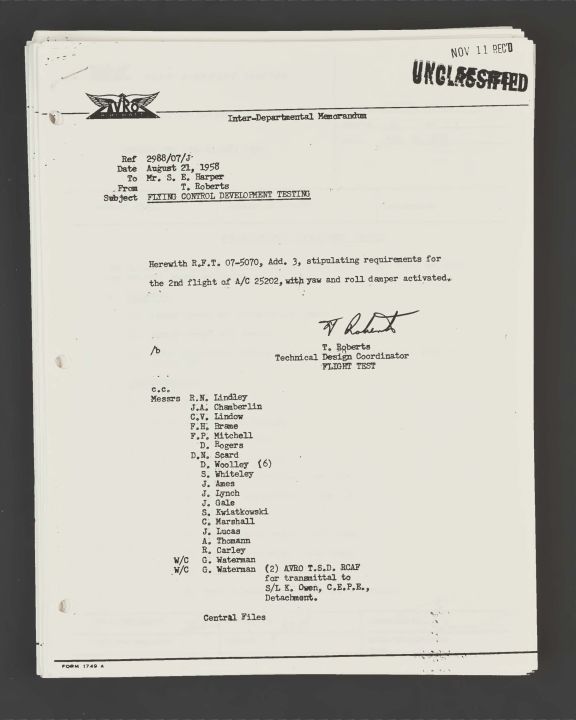 Ref 2988/07/J; RFT 07-5070 Add 3, 25202 2nd flight to test yaw and roll dampers