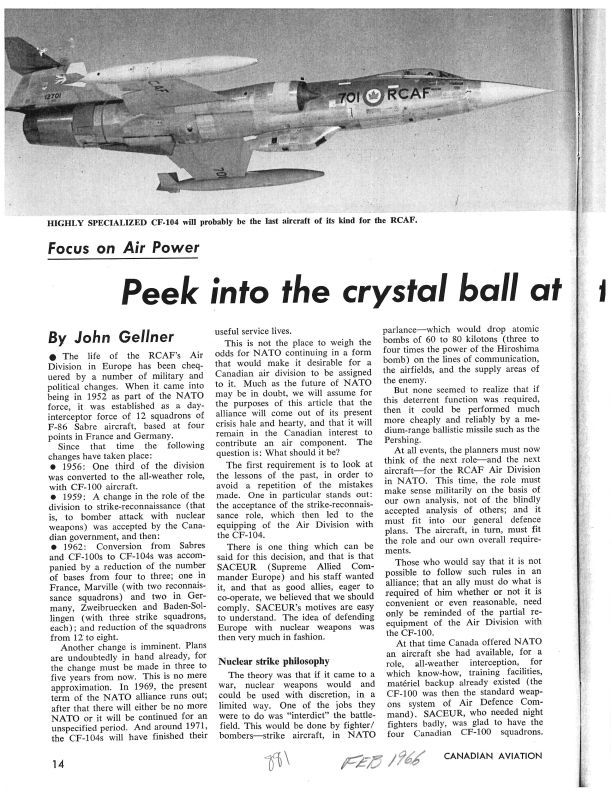 Focus on Air Power - Peek into the crystal ball at the RCAF's future NATO roleEntry/Object ID