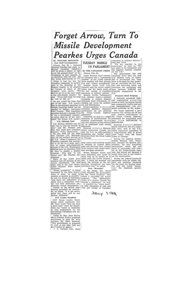 Forget Arrow, turn to missile development, Pearkes urges CanadaEntry/Object ID