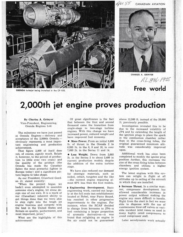 Free world looks to Orenda research, development - 2000th jet engine proves production milestone for Canadian industry…Entry/Object ID