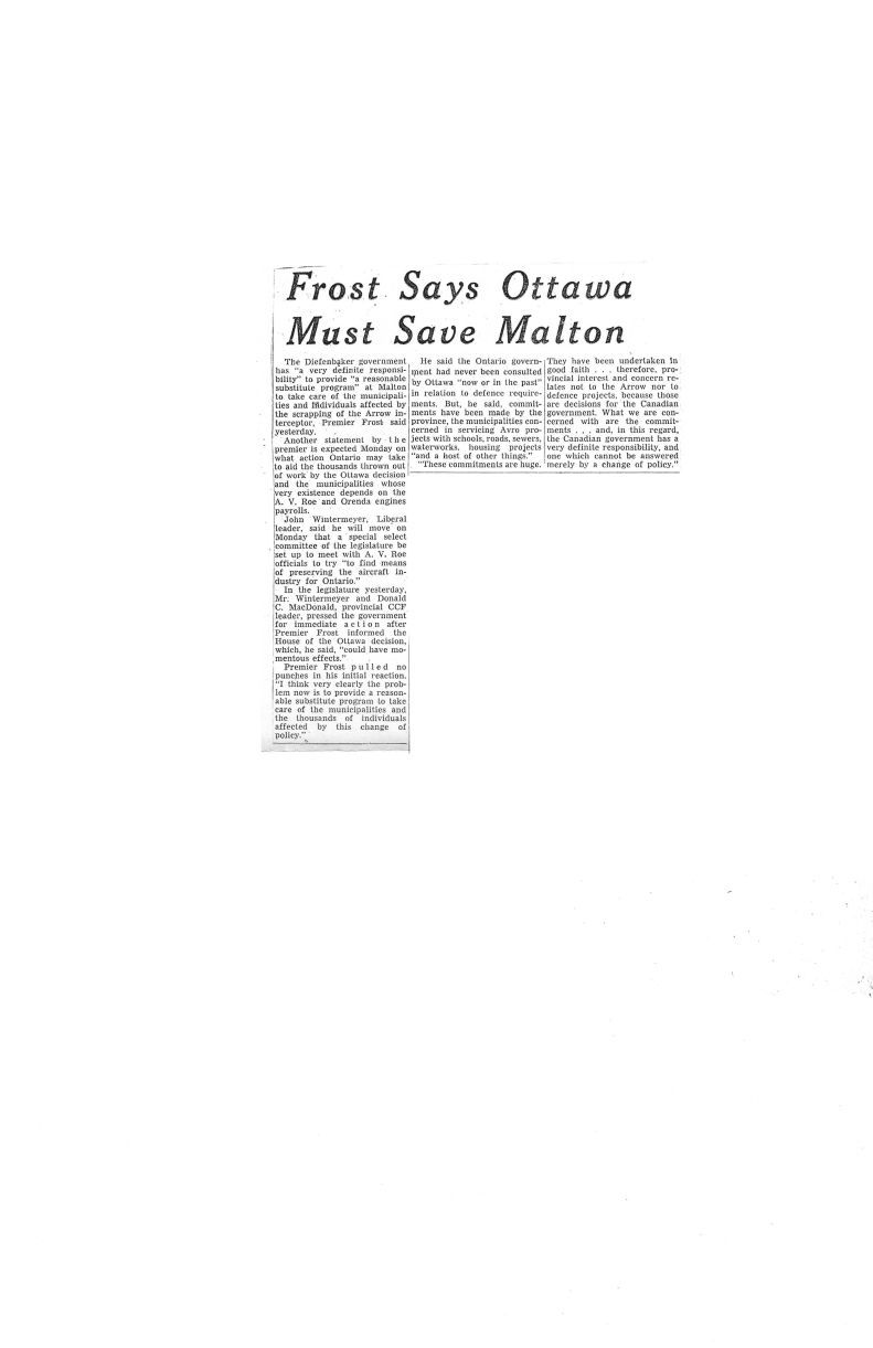 Frost says Ottawa must save Malton