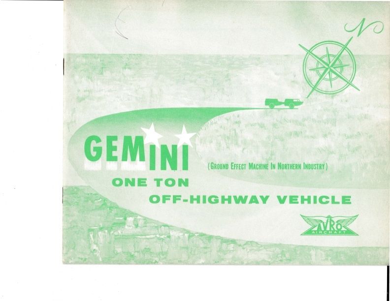 Outline of off road vehicle in an effort to diversify, using priciples of Avrocar and Hovercraft in design principle. Gemini: Ground Effect Machine in Northern Industry