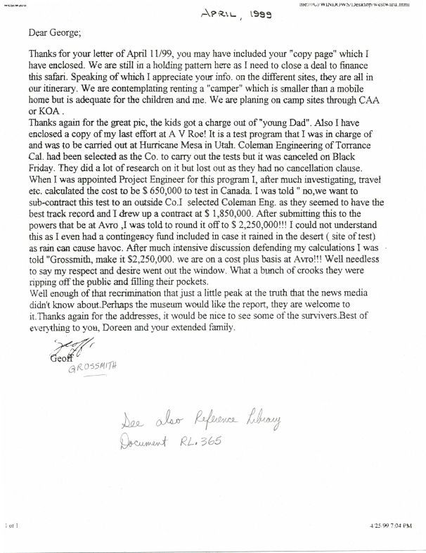 Geoff Grossmith letter