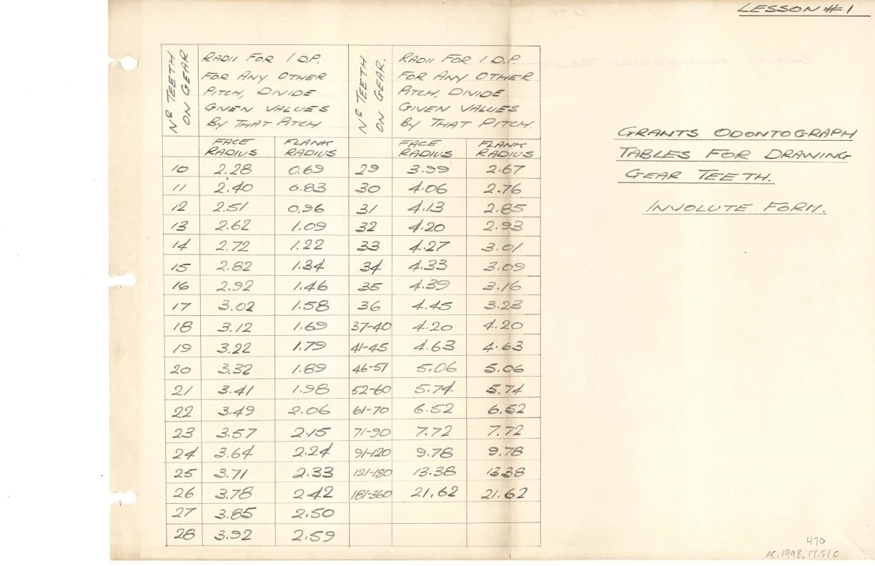 Grants Odontograph Tables for Drawing Gear Teeth